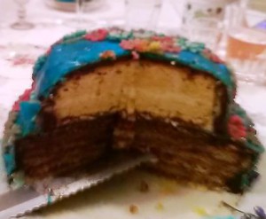 Man kann auch eine der Cremes durch Marmelade ersetzen, dann wird der Kuchen nicht ganz so süß.